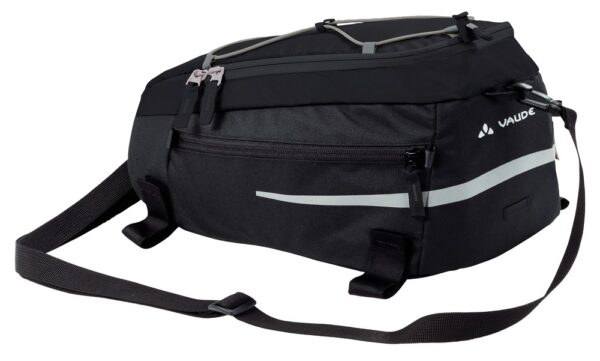Takes the lug out of luggage. The VAUDE Silkroad M 7 rear rack bag has 7 litres of carrying capacity. It features a velcro attachment and a cargo net for more storage. A good size to store your e-bike battery inside (Panasonic, Bosch and Sanyo).