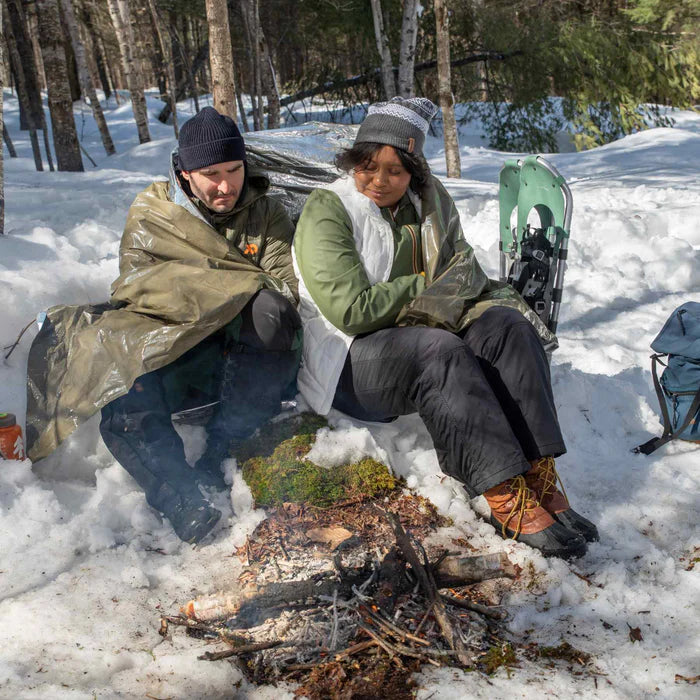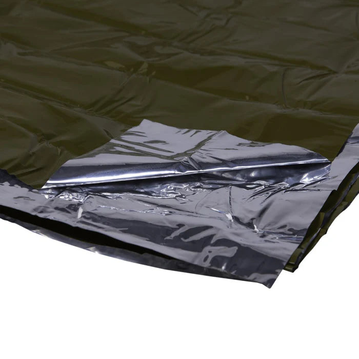 This all-purpose blanket is designed to be used as a survival shelter, tent ground tarp, gear cover, or load hauler. This durable emergency blanket features a windproof and waterproof coating that reflects 90% of radiated body heat, providing you with warmth and keeping you dry in all emergencies.