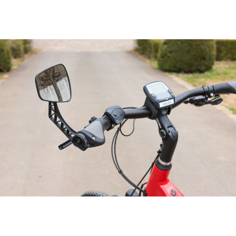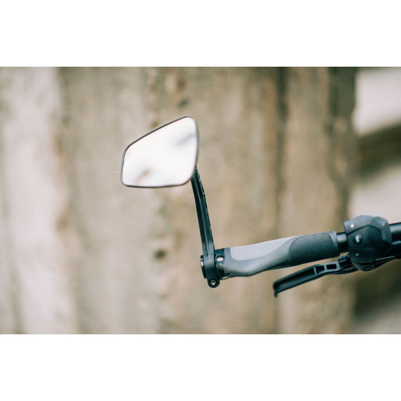Good rigidity thanks to the glass fibre reinforced polyamide material. The mirror remains stable and does not move while riding.